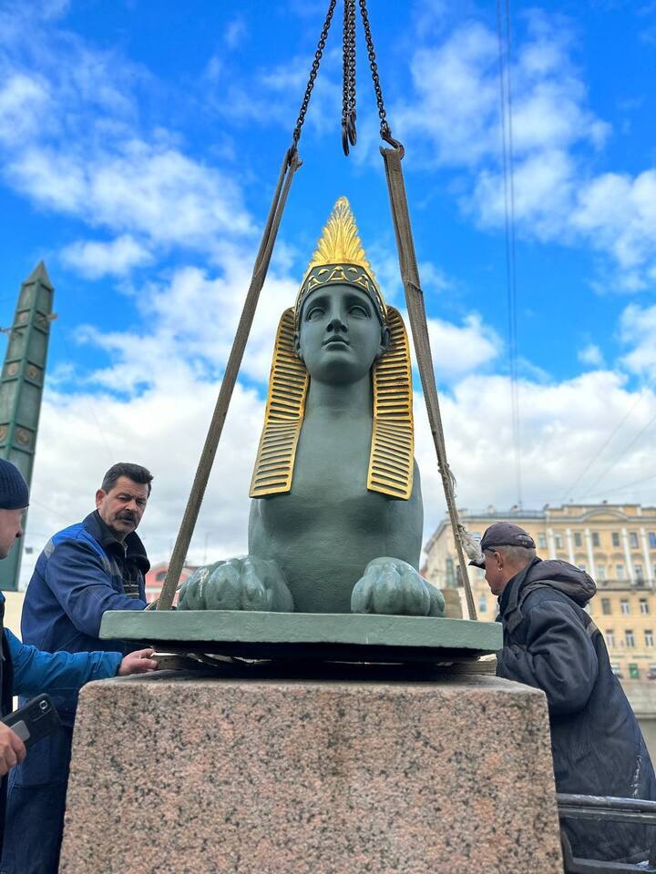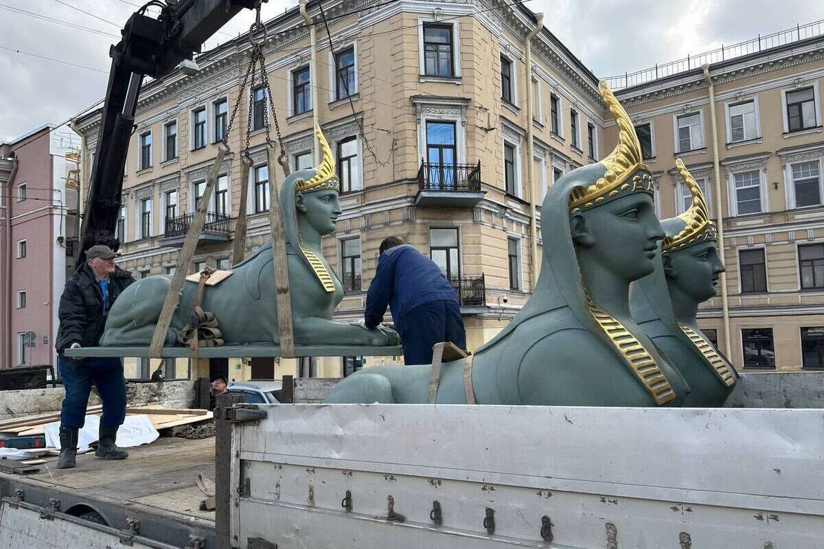 Теперь сфинксов вновь отправили в мастерскую, где реставраторы восстановят покрытие и приведут скульптуры в порядок.