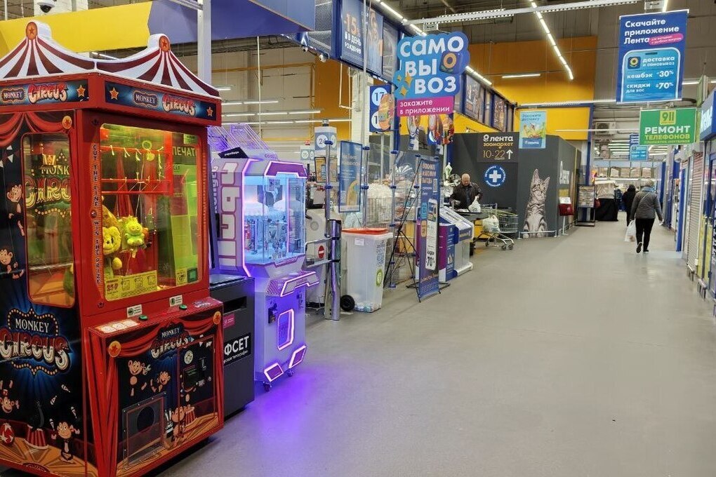 Игровой автомат, установленный в прикассовой зоне в гипермаркете «Лента» на Дальневосточном проспекте, 16, внезапно исчез после публикации в «МК в Питере».