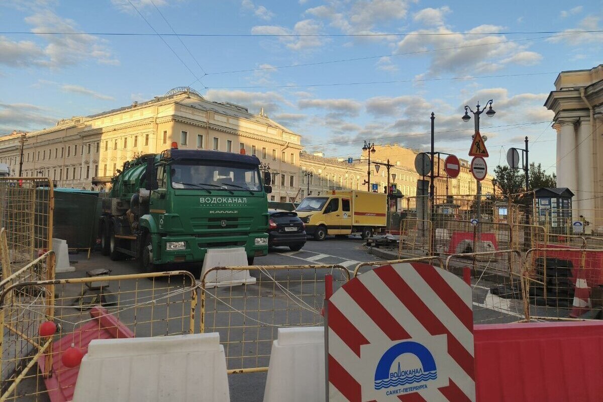 Уже несколько месяцев петербуржцы вынуждены обходить технику и ограждения «Водоканала» на участке у Гостиного двора на пересечении Думской улицы и Невского проспекта. При этом на официальной карте ремонтных работ на сайте «Водоканала» никаких текущих раскопок на этом участке не обозначено. Их, собственно, и не видно.