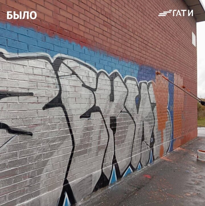 После профилактической работы инспекторов ответственный за содержание приступил к устранению нарушения. На фото, сделанном в процессе, на месте «ЦСКА» уже появилась новая надпись — «Зенит».