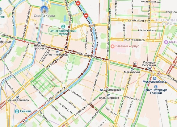 22 октября днем на пересечении двух улиц в Петербурге произошла авария. Чёрная иномарка перевернулась, а остальные машины также получили серьезные повреждения от столкновения. Из-за дорожной аварии оказались парализованы Садовая и Невский. Согласно данным портала «Яндекс.Пробки», движение затруднено.