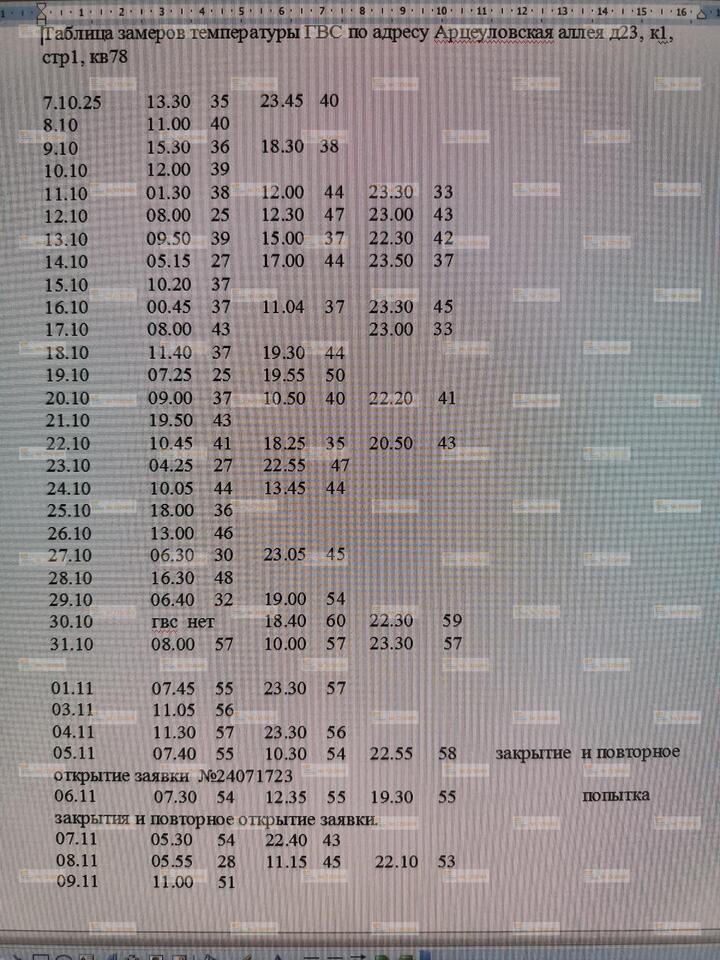 График температуры, прикреплённый пользователем к обращению. Фото: портал «Наш Санкт-Петербург».