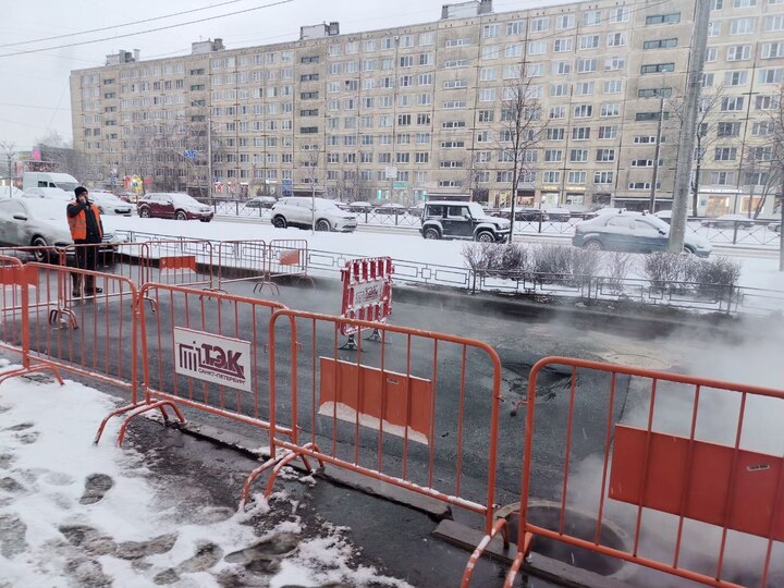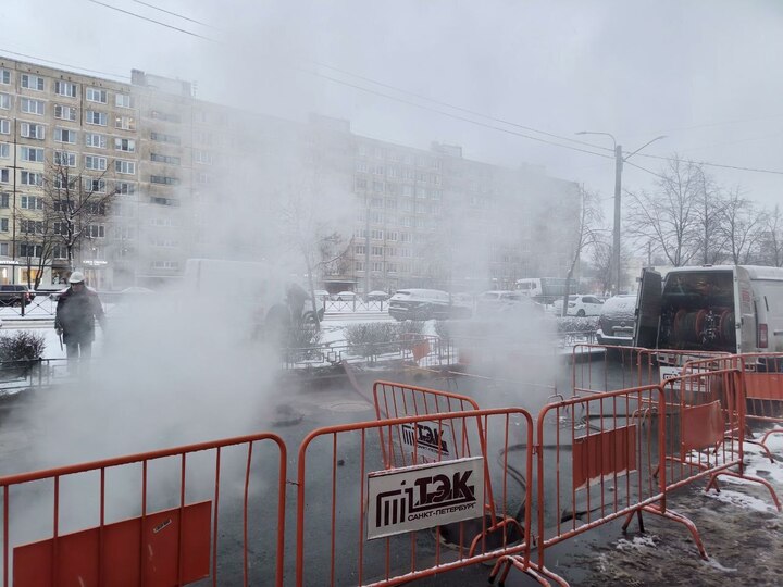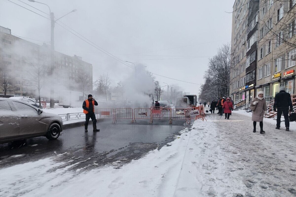 Рабочий на месте предупредил, что в трубе имеется пробой, но пока место все еще осматривают специалисты. В разговоре он также отметил, что, скорее всего, где-то в Невском районе сегодня могут отключить отопление и воду, но где, во сколько и на какой промежуток времени, он не знает.