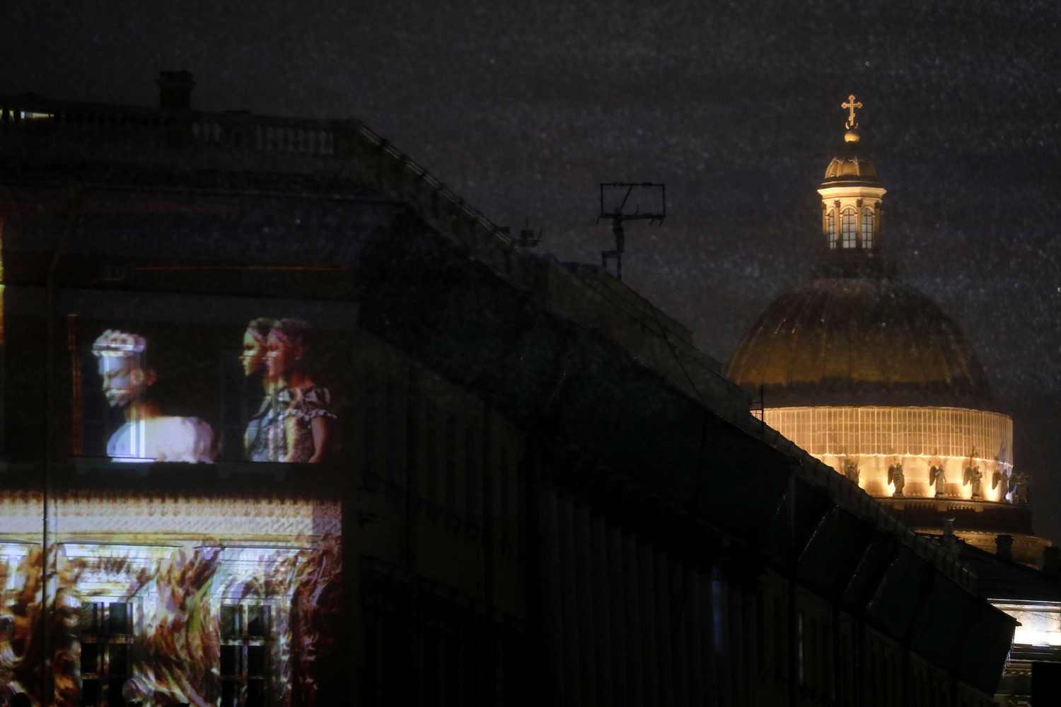 «С аркой Главного штаба и штаба Гвардейского корпуса, общая площадь, на которой происходит проекционное шоу, составляет почти 10 тысяч квадратных метров. Для реализации этого мы используем самые мощные проекторы, которые есть в нашей стране», – передает ТАСС слова руководителя проекта «Мультимедийное шоу на Дворцовой» Максима Баландина.