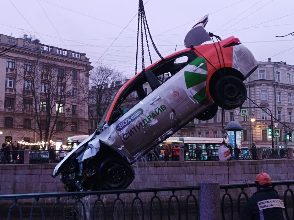 Ближе к пяти вечера приехали поисково-спасательные службы и начали вытаскивать каршеринг. Периметр во время работ оцепили. На месте также работали две полицейские машины и скорая помощь.