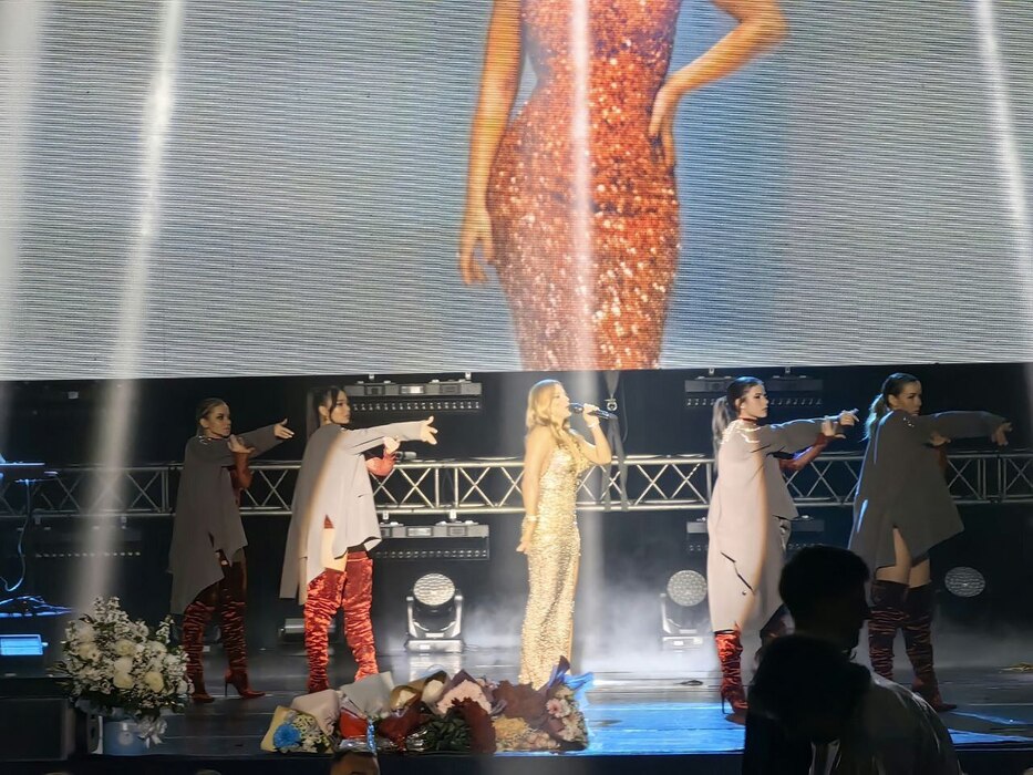Романтичной атмосферой был окутан и зал «Октябрьского». Лорак подарили целое море цветов, которые расположились прямо на сцене. Также муж активно принимал участие в процессе: снимал ее фан-встречу на телефон.