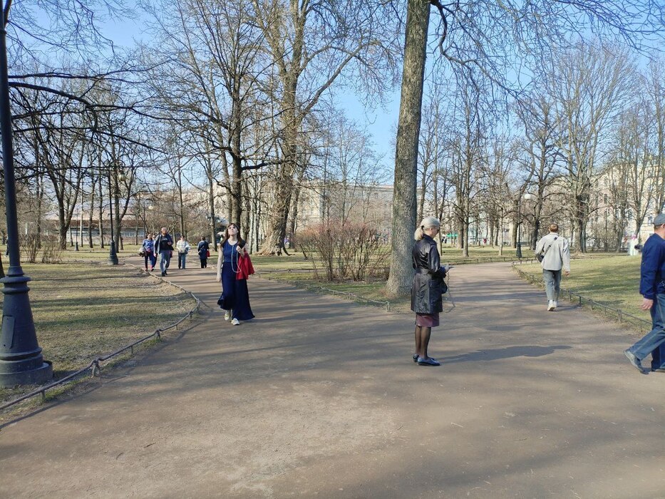 Тем временем петербуржцы перешли на «летний режим». Журналист «МК в Питере» встретил жителей в одних футболках у станции метро «Горьковская».