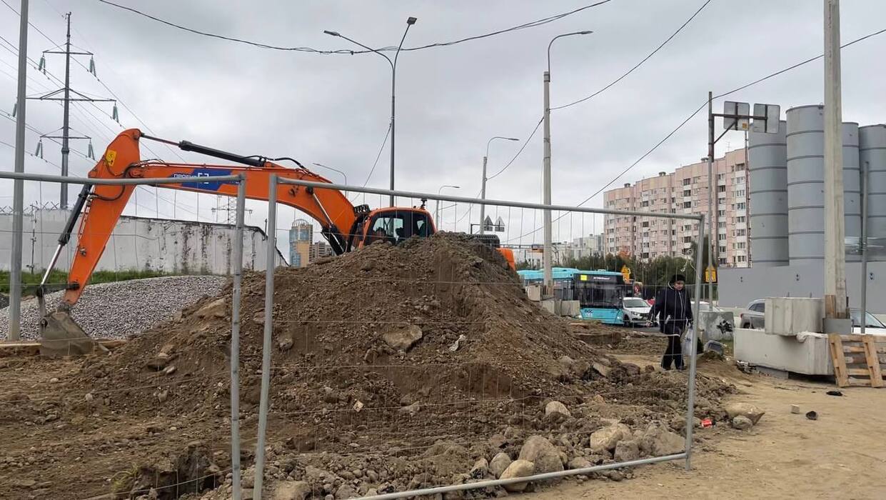 Во-первых, ограды, где ведутся строительные работы, не было. Во-вторых, экскаватор работает в непосредственной близости. Также наш журналист стала свидетелем сцены, в которой пожилая петербурженка чуть не получила травмы. Женщина шла по грязи, на этом участке дороги даже не положили дощечки, и едва удержала равновесие, чтобы не упасть.
