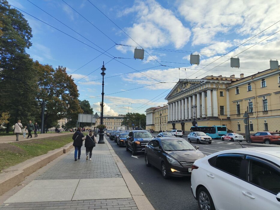 Сегодня в Петербурге обычный рабочий день. Горожан и гостей Северной столицы греет непривычно теплое октябрьское солнце, туристы прогуливаются по главным улочкам Петербурга.