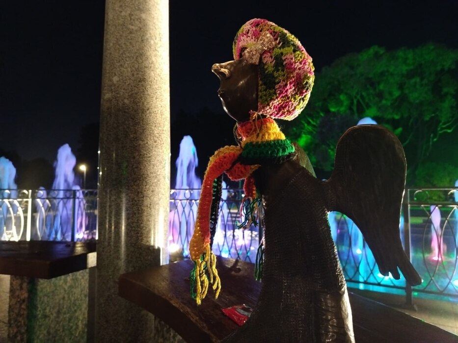 В редакцию «МК в Питере» прислали умилительные фотографии. На них бронзовый ангел Любашик, которого принарядили к осени, сидит на лавочке в вязаном шарфике и шапочке.