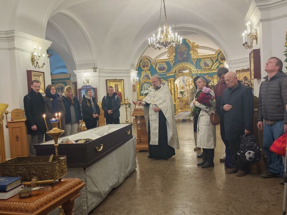 По словам нашего корреспондента, сегодня у собора было немноголюдно. После того, как в храм занесли гроб с телом актера, его открыли и до отпевания присутствующие стали возлагать цветы. Разноцветные астры легли у ног артиста, а вскоре поднялись до его груди, а храм постепенно заполнился.