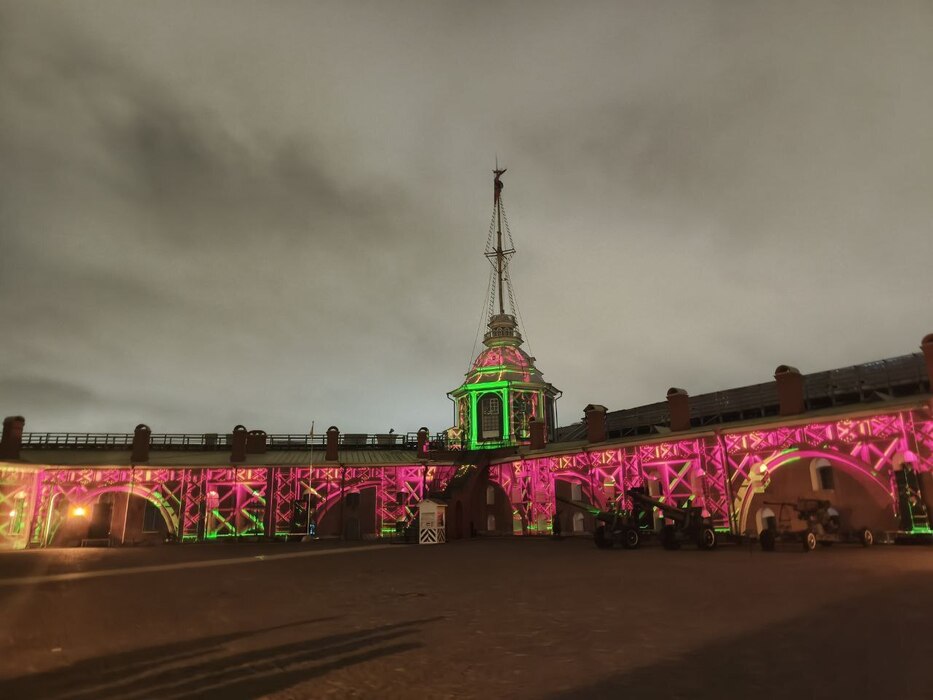 Создание проекции на объекты культурного наследия — всегда сложная художественная задача. Как рассказали создатели, хотя архитектура Петропавловской крепости хорошо подходит для видеомэппинга, художникам часто приходилось переделывать готовые работы, чтобы они идеально «легли» на неровные стены Нарышкина бастиона и фасад Монетного двора.