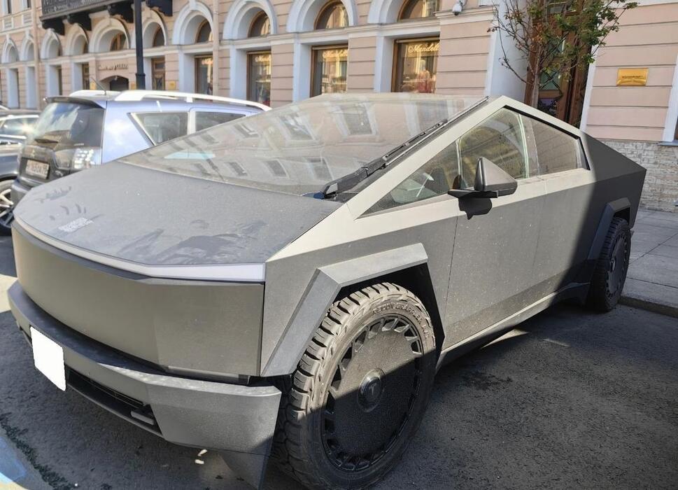 На Петроградке в Петербурге заметили обновленный Tesla Cybertrack. Теперь авто с футуристичным дизайном получило черное матовое покрытие. Фотографии обновленного Cybertrack показал журналист «МК в Питере».