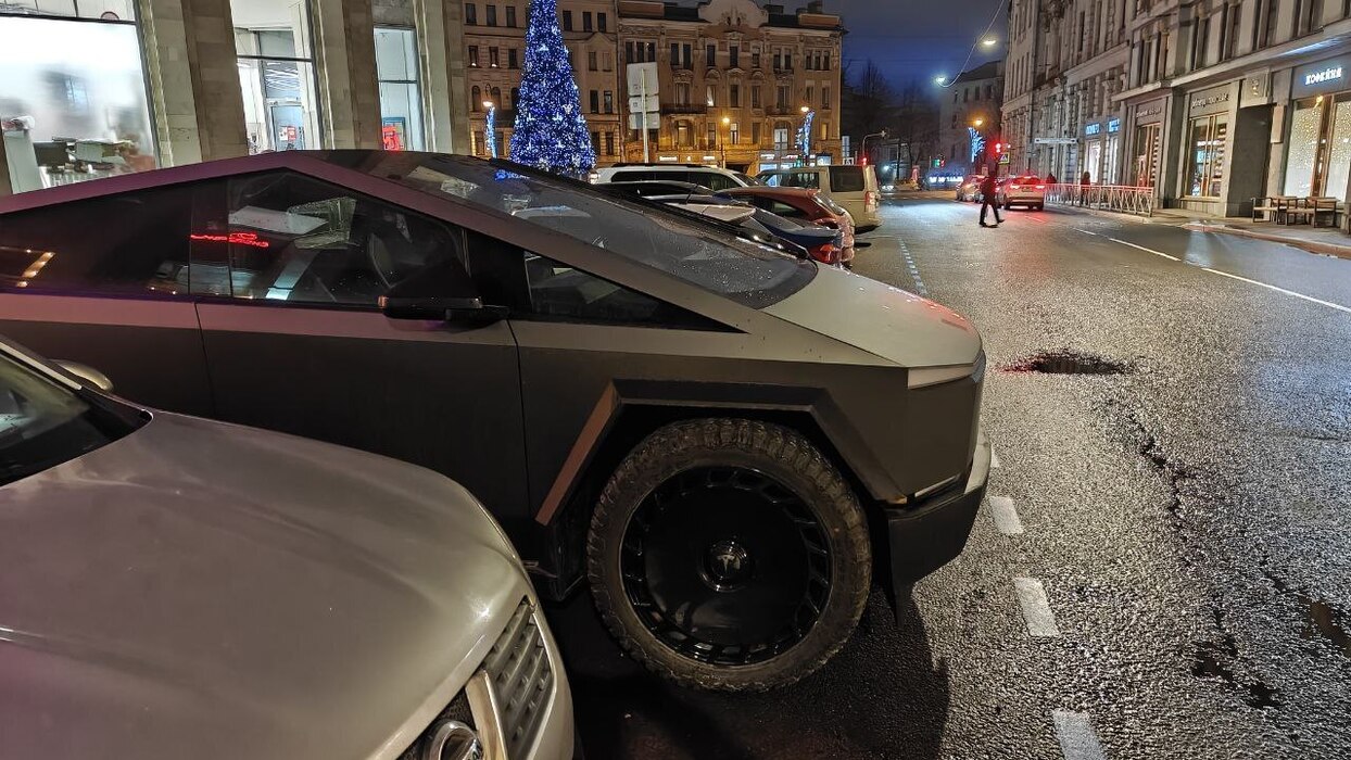 На Петроградке в Петербурге заметили обновленный Tesla Cybertrack. Теперь авто с футуристичным дизайном получило черное матовое покрытие. Фотографии обновленного Cybertrack показал журналист «МК в Питере».