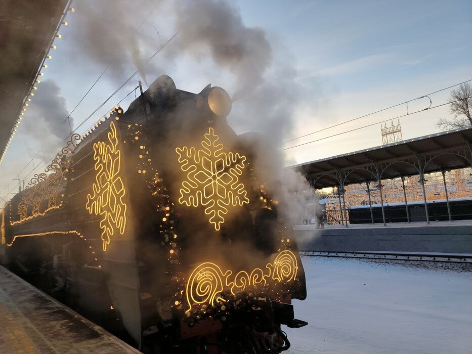 Праздничный состав включает несколько тематических вагонов: приёмную Деда Мороза, игровую зону со сказочной деревней, вагон-сцену с кукольным театром и вагон Снежной Королевы. Сегодня же для посещения откроют фотозону и вагон-ресторан, но точное время их открытия организаторы объявят дополнительно.