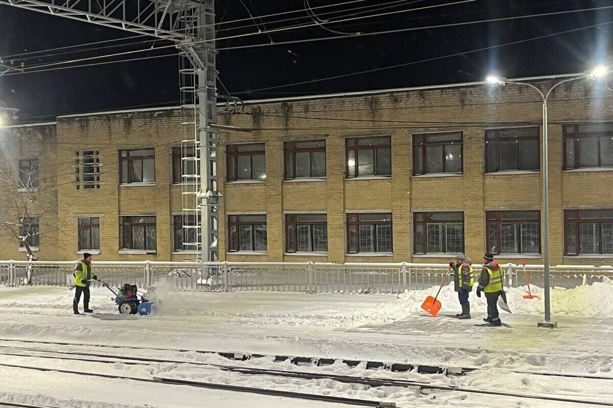 С вокзалов Петербурга убрали 230 кубических метров снега с 10 февраля. Об этом сообщили в пресс-службе Октябрьской железной дороги.