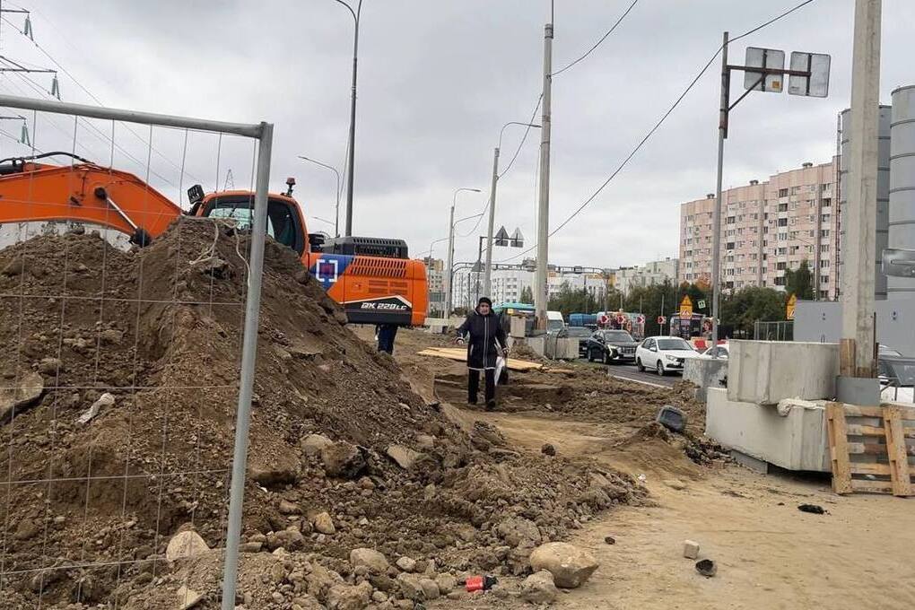 Тем временем в непосредственной близости от пешеходов работает экскаватор и стоит один рабочий, который никак не контролирует процесс. Горожанам приходится проходить рядом с этим местом максимально быстро, так как экскаватор не прекращает дорогу. Путь никак не оборудован, везде грязное месиво, на которое даже не положили пару деревянных досок.
