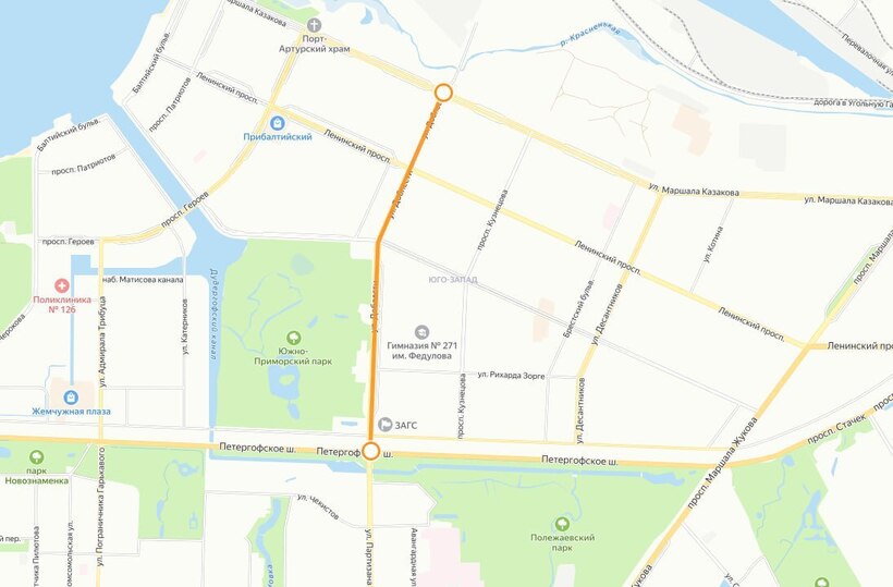 В Красносельском районе с 10 по 12 октября перекроют улицу Доблести от Маршала Захарова до Петергофского шоссе. Движение будет запрещено в направлении от улицы Маршала Захарова к Петергофскому шоссе.