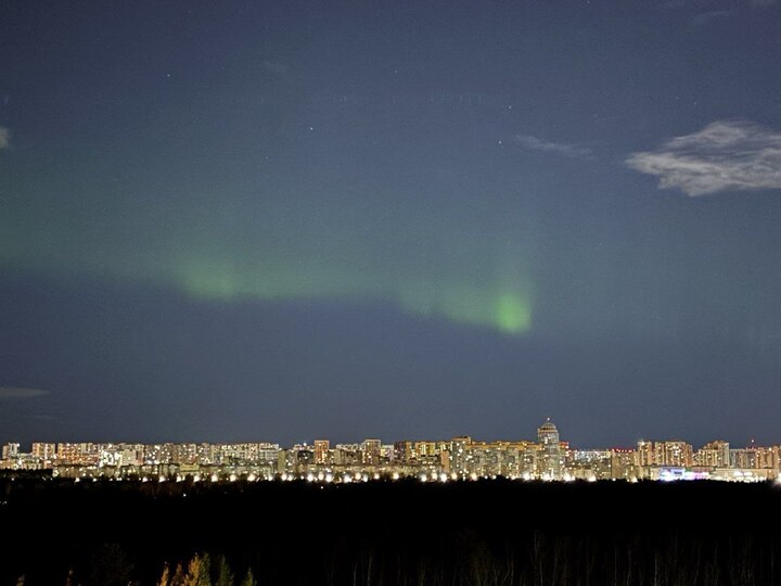 Также сияние было видно в Приморском районе. Один из петербуржцев опубликовал снимки с Камышовой улицы.