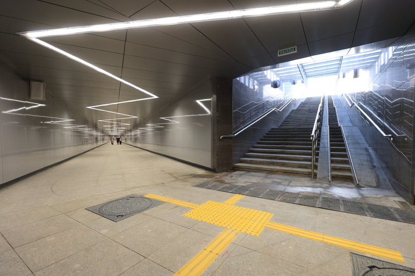 В подземном пешеходном переходе установлены пять лифтов, предназначенных для людей с ограниченными возможностями. Пол тоннеля выложен гранитом, а стены облицованы металлокерамическими панелями. Проект также включает систему обогрева ступеней и пандусов, что предотвращает образование наледи.