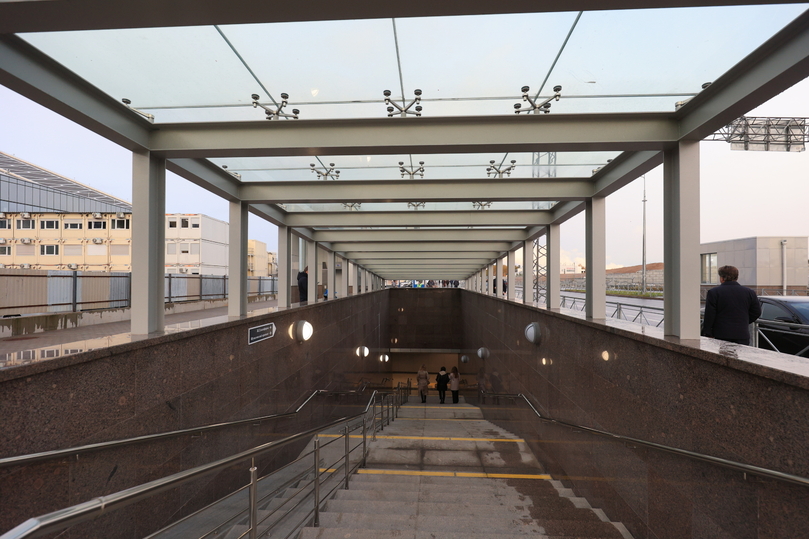Добраться до пассажирской платформы сотрудники и гости самого высокого небоскреба Европы смогут через подземный переход, длина которого составит 240 метров. Это один из самых протяжённых пешеходных тоннелей Санкт-Петербурга, не связанный с метро, который был возведён за счёт бюджетных средств города. Он обеспечивает безопасное пересечение Приморского шоссе, Высотной улицы и перспективного продолжения Шуваловского проспекта севернее железной дороги.