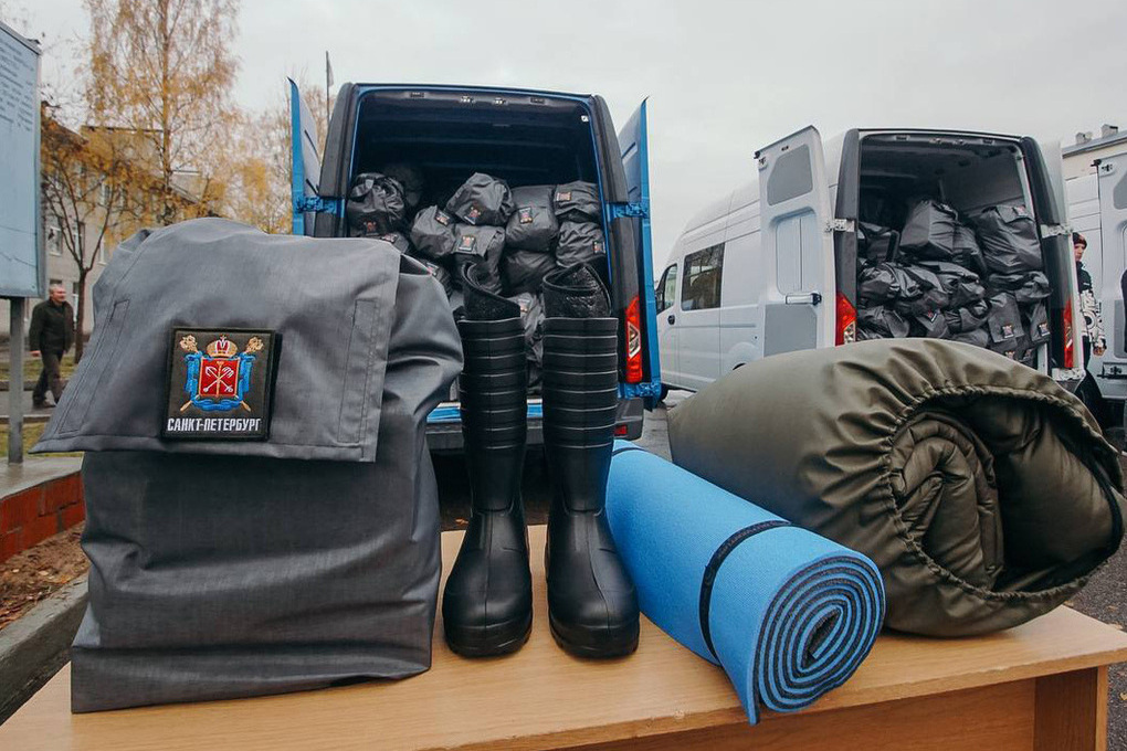 У военкомата Фрунзенского района резервистам вручили пакеты, в которых были бушлаты, носки, перчатки, шапки и термобелье. Средства на их закупку выделил петербуржец Михаил Пушкин, чья компания занимается производством пищевых ингредиентов.
