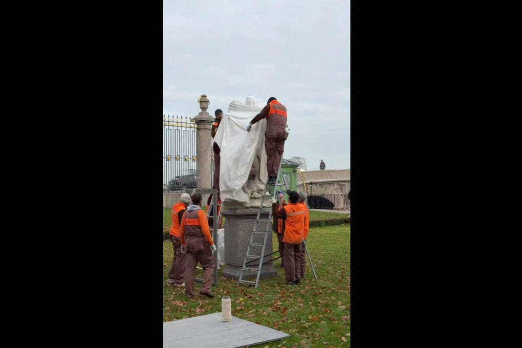 В Петербурге начали готовить Летний сад к зиме. Скульптуры накрыли хлопковой тканью и поместили в деревянные футляры, чтобы защитить мрамор от морозов и осадков, сообщили в Русском музее.