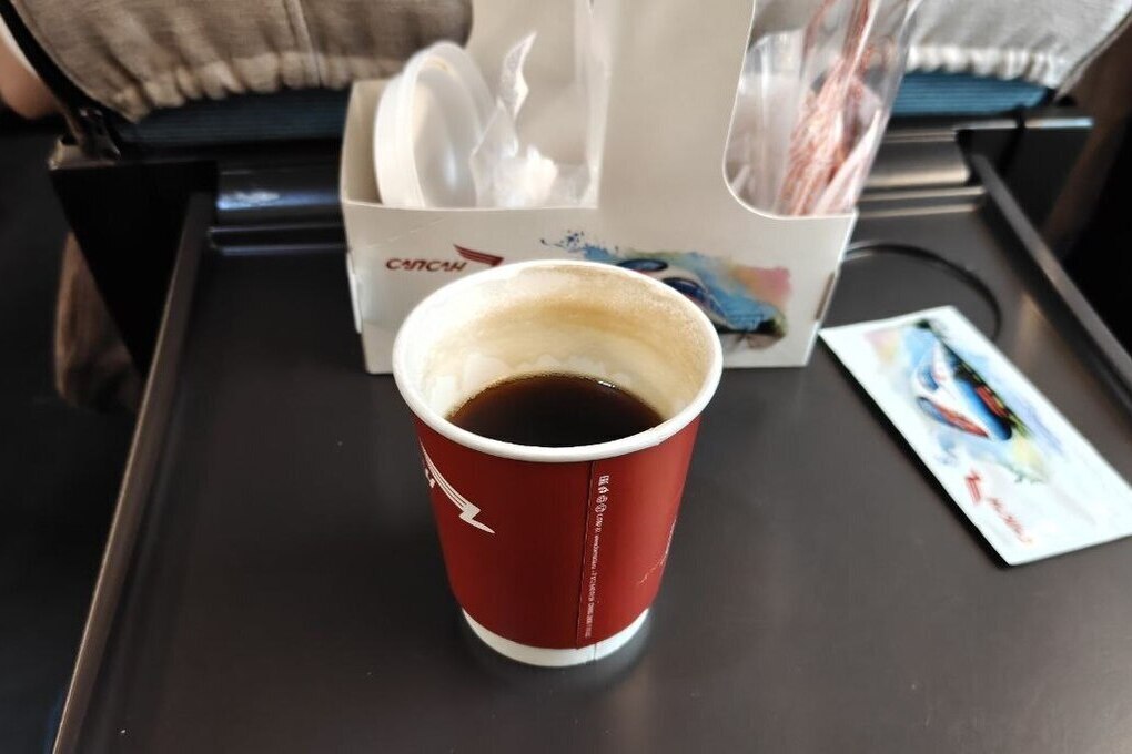 Небольшая порция американо в «Сапсане» обходится в сумму 320 рублей. Однако, по словам пассажиров, это «подкрашенная коричневым водичка, которая даже кофе не особо пахнет», и здесь, похоже, утренние ценители кофе нашли ещё один повод для бурной реакции.