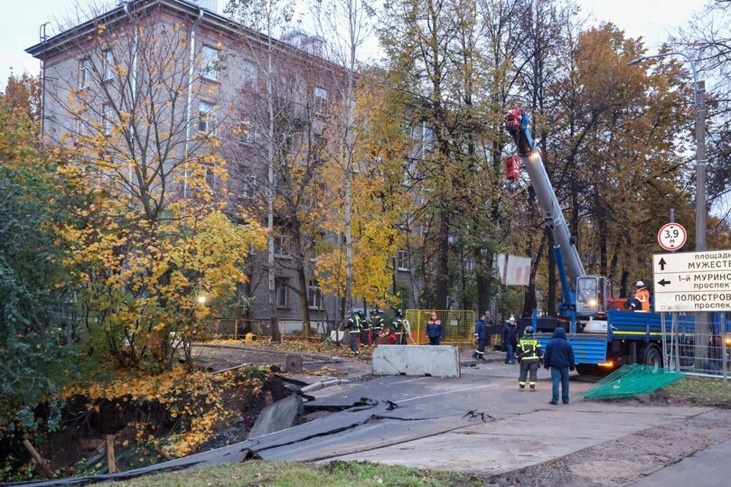 Жителям дома 29/20 по 1-му Муринскому проспекту пришлось покинуть свои квартиры в ночь с 20 на 21 октября. Рядом со зданием провалился асфальт и образовалась гигантская яма из-за прорыва коллектора, принадлежащего «Водоканалу» (генеральный директор — Сергей Волков).