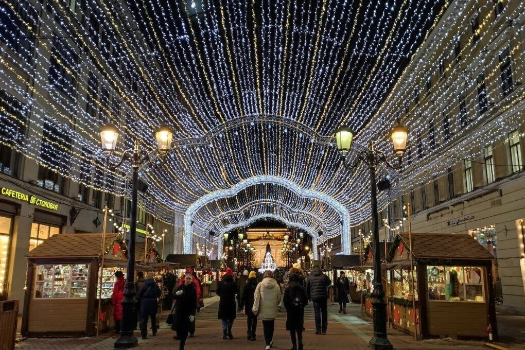 Петербургскую рождественскую ярмарку на Манежной, Московской и Дворцовой площадях оформят в русском стиле. Об этом сообщает ТАСС.