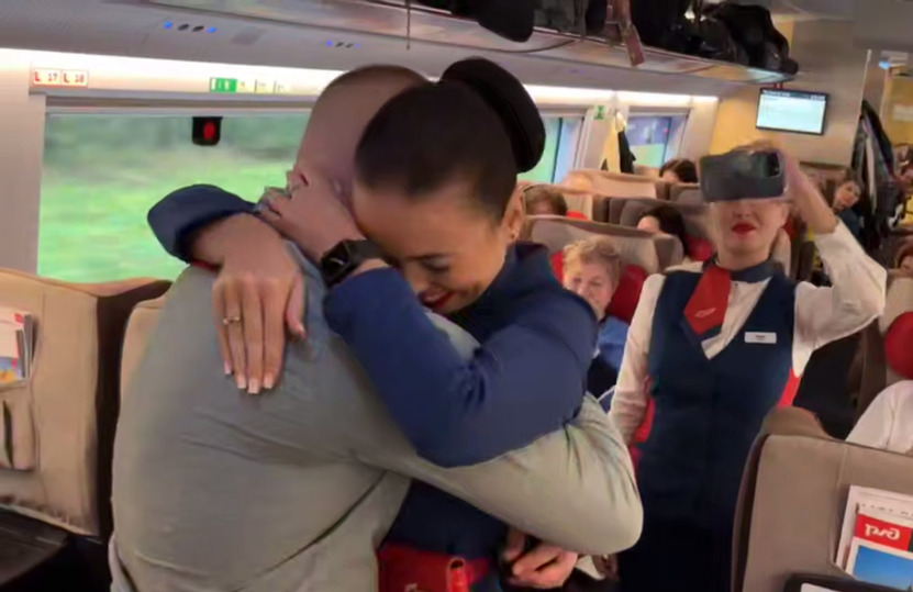 Во время рейса поезда «Сапсан» из Санкт-Петербурга в Москву один из пассажиров сделал предложение руки и сердца своей девушке, которая работала проводником поезда. Об этом сообщили в пресс-службе РЖД.