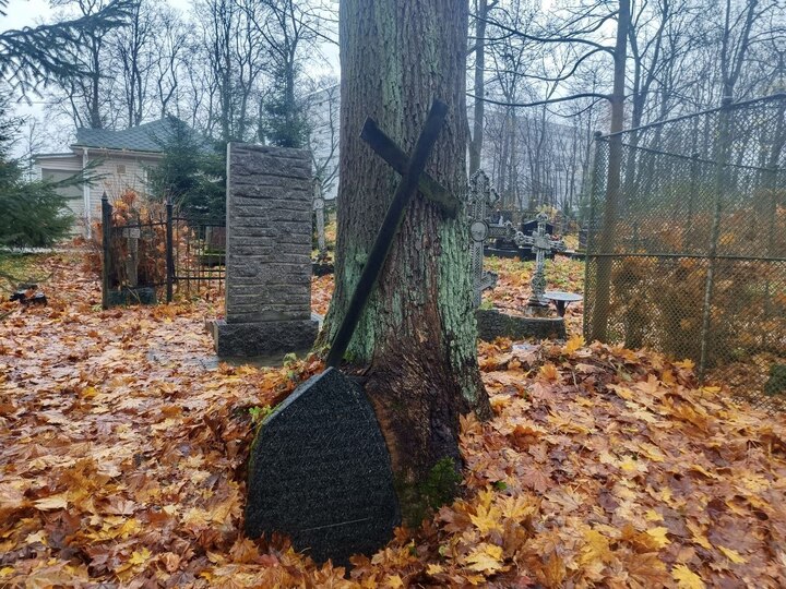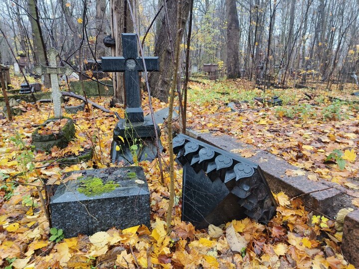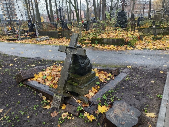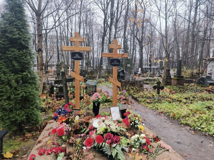 Некоторые надгробия известных петербургских деятелей также требуют внимания. Так, на могиле Эдуарда Хиля, где таинственно исчез огромный монумент, теперь стоят два крепких деревянных креста. В 2024 году рядом с популярным советским и российским певцом похоронили его супругу, возможно, памятник убрали по этой причине. Однако портрет в рамке под крестом есть только у нее, а фото Эдуарда Хиля отсутствует.