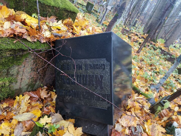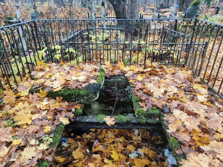 Пестрые осенние листья только добавляют тоскливости заброшенному надгробию географа и путешественника Петра Петровича Семенова-Тян-Шанского. Как отметила Наталья, его могила выглядит так плохо явно не от суровой погоды и скоротечного времени.