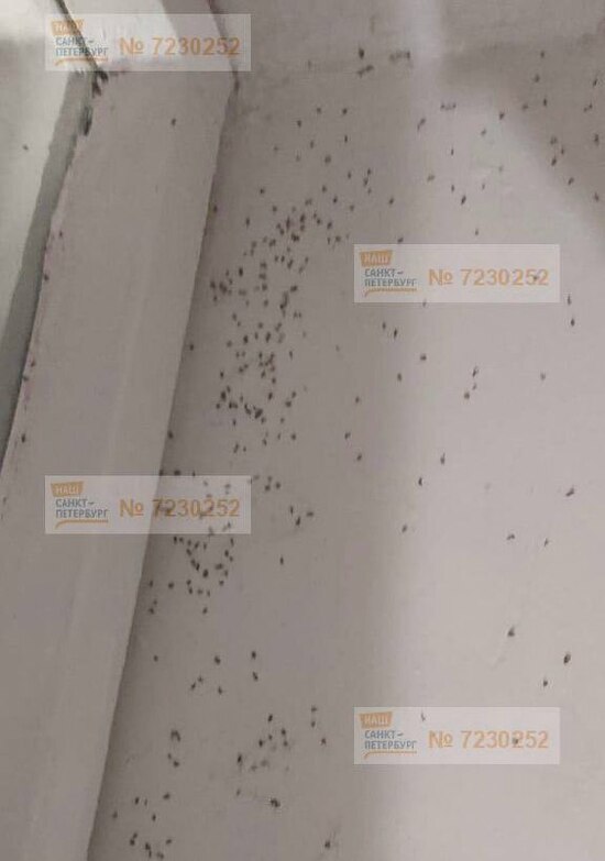 Как сообщают жители дома, мухи находятся во всём здании. Они летают по парадной и в квартирах. Также насекомые прекрасно чувствуют себя в подвале.