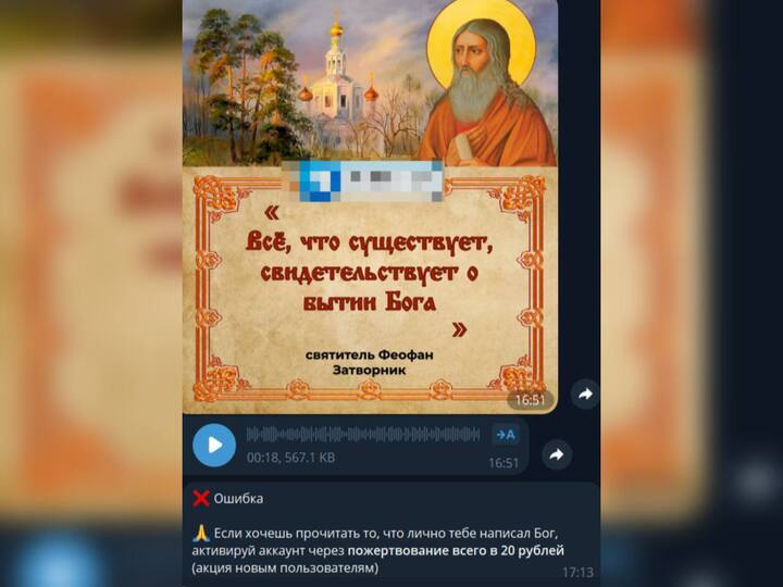 Однако, чтобы прочитать «личное сообщение от Господа Бога», бот предлагает «активировать аккаунт через пожертвование всего в 20 рублей». После выхода из чата начинают приходить сообщения с предложениями «особой молитвы на притяжение отношений» за небольшую плату, а также сгенерированные картинки счастливой богатой семьи со слитками золота, машинами, купюрами денег и иконой на фоне, с обещанием заработка в «$1000».