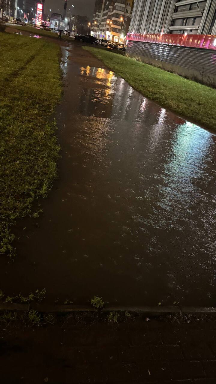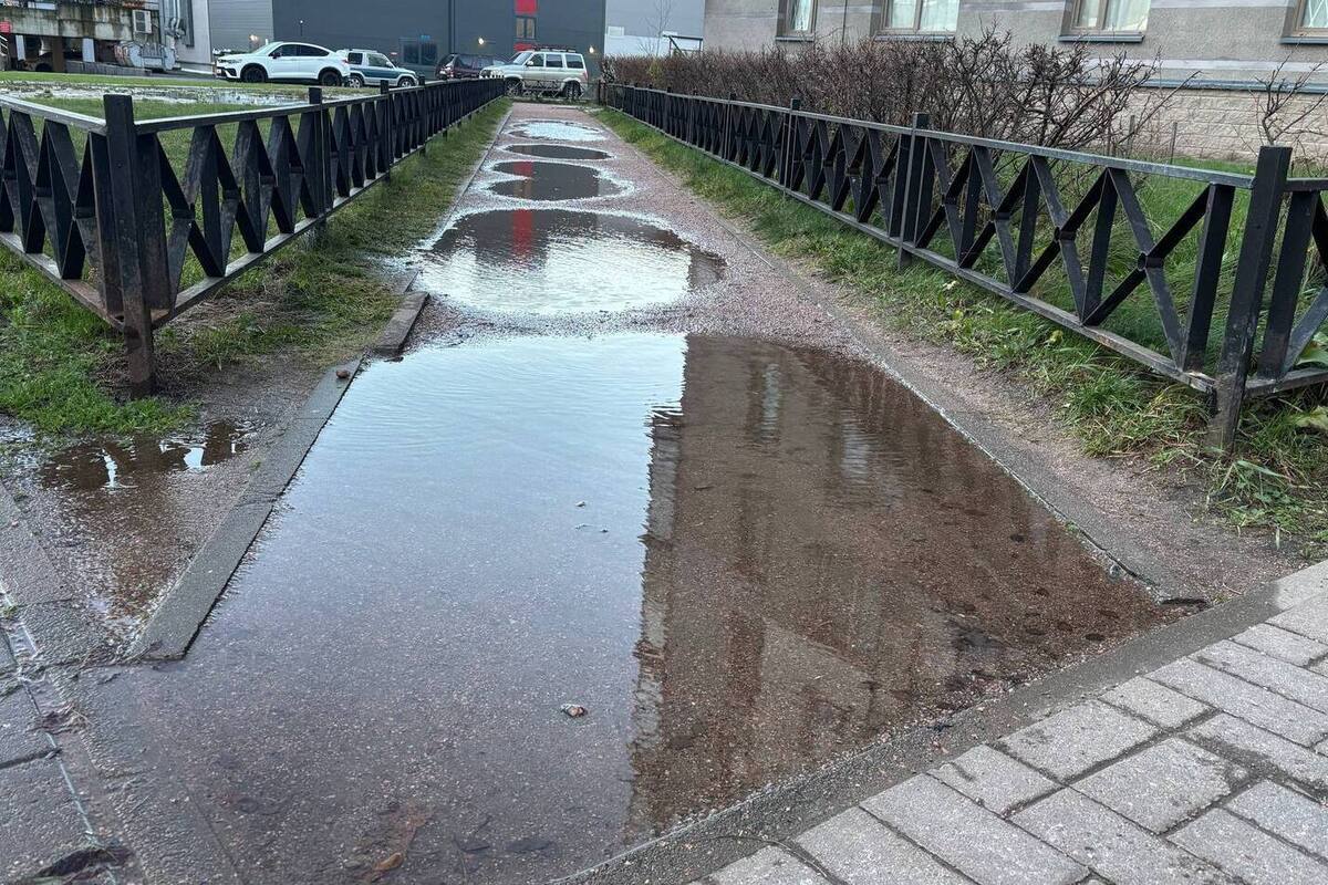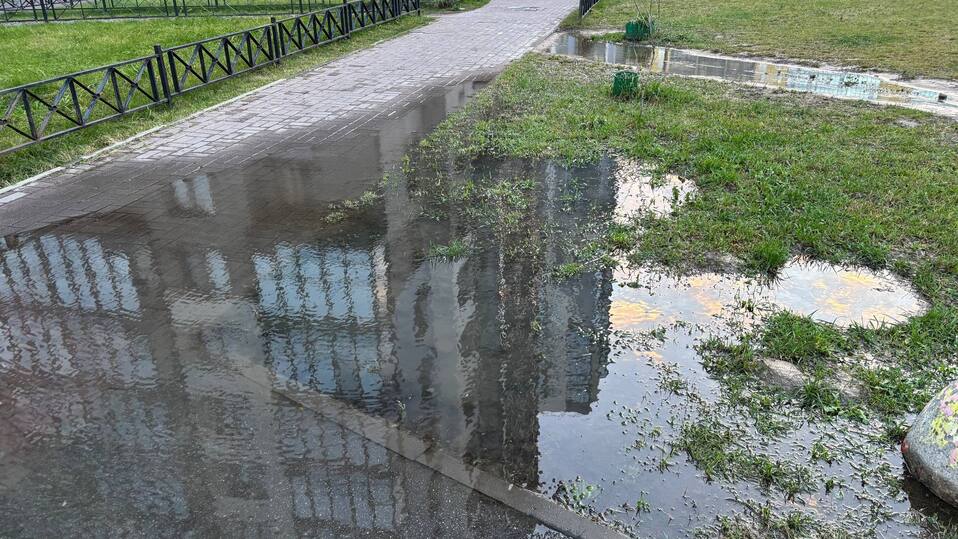 Во дворах Кушелевской дороги в Калининском районе Петербурга местные жители обратили внимание на огромные лужи возле детской площадки.