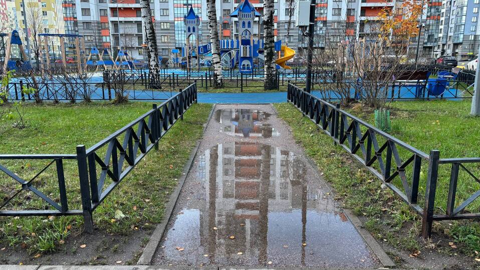 Во дворах Кушелевской дороги образовались «озера» возле детской площадки