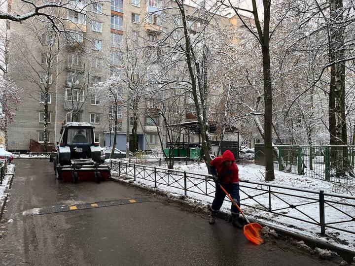 В администрации Петербурга уточнили, что по регламенту в случае выпадения осадков для уборки тротуаров и дворовых территорий выводят спецтехнику с обязательной обработкой антигололёдными средствами. Работы идут регулярно в зависимости от погодных условий.