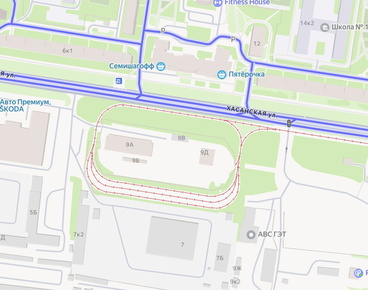 Комплекс на Хасанской улице расположен в тесной городской застройке: с севера примыкают жилые дома и общественные здания, с востока – автобусная станция и проспект Наставников, с юга – трамвайное кольцо, а с западной стороны находятся объекты общественного назначения. Проект охватывает территорию площадью 9600 квадратных метров.