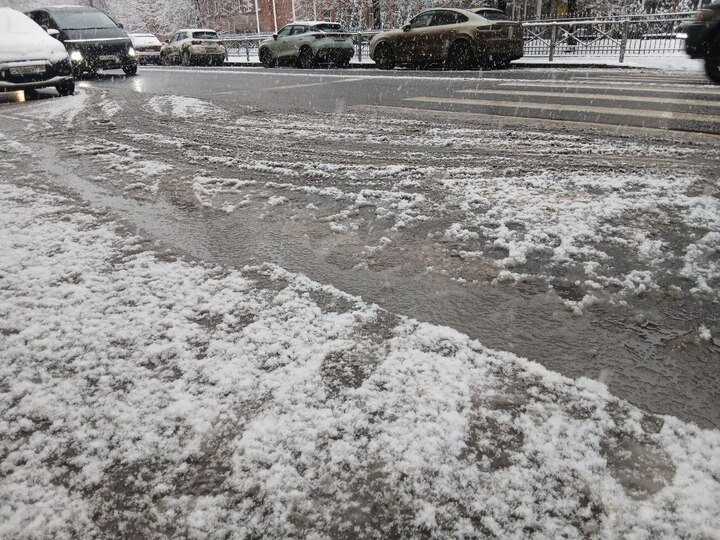 Дороги после снегопада оказались чистыми, чего не скажешь о тротуарах: вдоль поребриков и бордюров пешеходов встречает растаявший снег. Фото: МК в Питере / Наталья Морозова