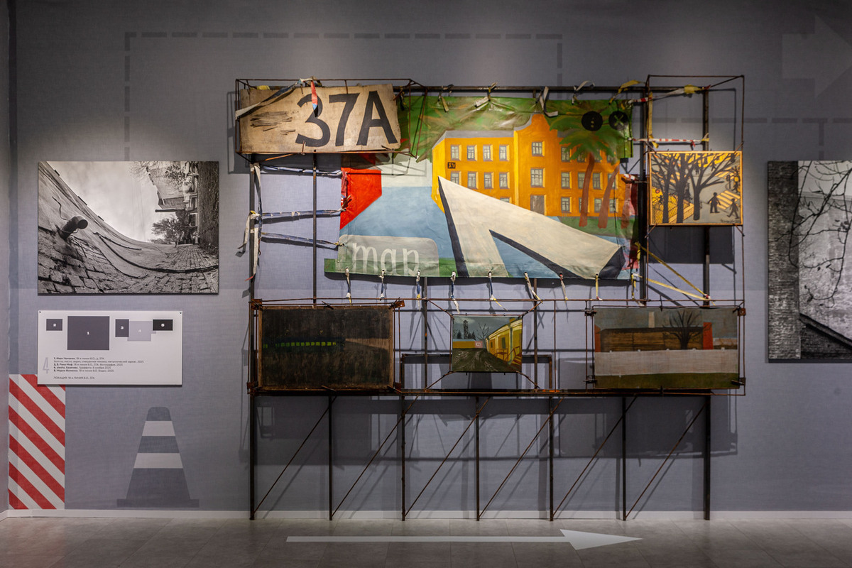 Экспозиция выстроена так, чтобы зритель сам выбирал траекторию. Пространство начинает работать с первых минут — нулевой слой погружает посетителей в поток видеозвуковых образов, созданных Юрием Эликом, Марией Фоменко и Александром Ванюковым. Куратор отметила, что этот слой подобен самому городу: он распадается на узнаваемые фрагменты и вновь собирается в единую живую картину, задавая эмоциональную вибрацию всему последующему маршруту.