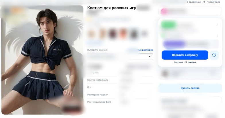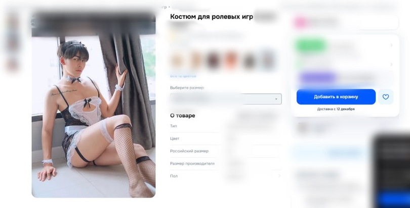 Стоит добавить, что на страницах с данными товарами есть маркировка, подтверждающая возрастные ограничения. Однако есть лазейки для обмана системы, например, некоторые несовершеннолетние дети могут зайти с подтвержденного аккаунта родителя или ввести другой год рождения. То есть любой пользователь может увидеть необычный костюм на модели. Некоторые замечают в этом пошлость, а другие пропаганду нетрадиционных сексуальных отношений*, поскольку мужчина демонстрирует костюм на промо товара в женском одеянии.