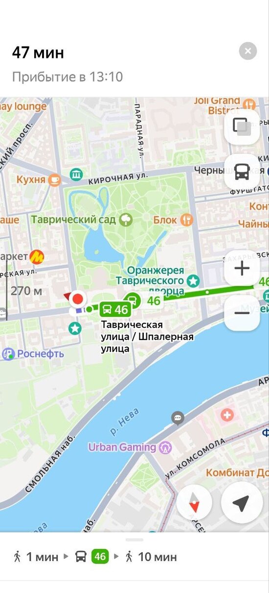 По данным сервиса Яндекс.Карты, автобус №46 должен был следовать прямо от указанного места до Чкаловского проспекта. Он отображался на карте в режиме реального времени, якобы он стоит прямо на остановке и ждёт пассажиров, а затем едет дальше. Однако к местному жителю транспортное средство так и не подошло.