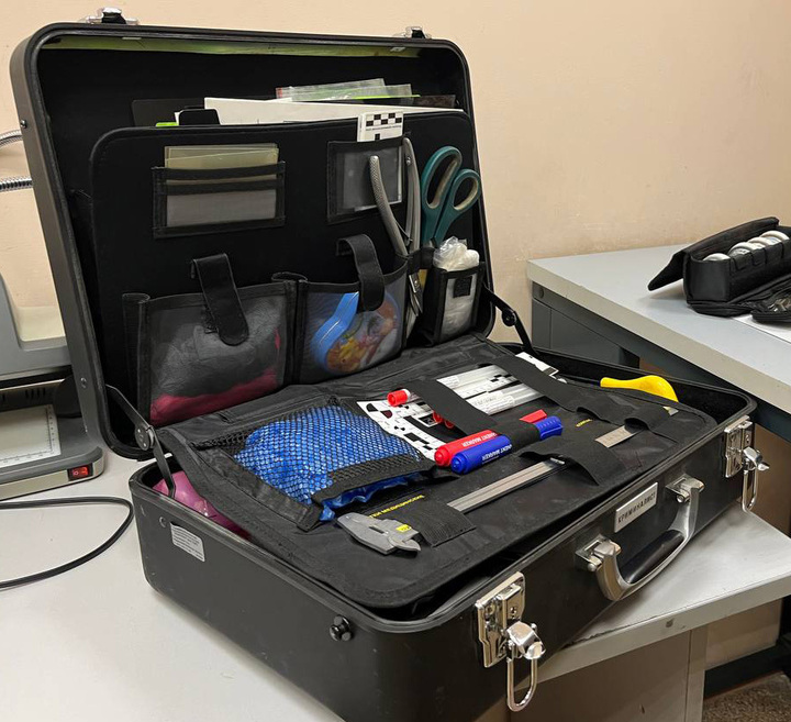 В кабинете Диана Александровна первым делом показывает мне главный инструмент любого криминалиста на выезде — криминалистический чемодан. В нем — целый арсенал для изъятия улик: от кисточек и дактилопорошков до специальных пленок и прожекторов. Это ее рабочая палитра, а место преступления — холст, где нужно прочитать историю, написанную преступником.