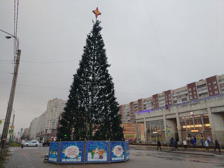 Чудо не пришло: у «Проспекта Просвещения» впервые поставили новогоднюю ёлку, но она оказалась дырявой