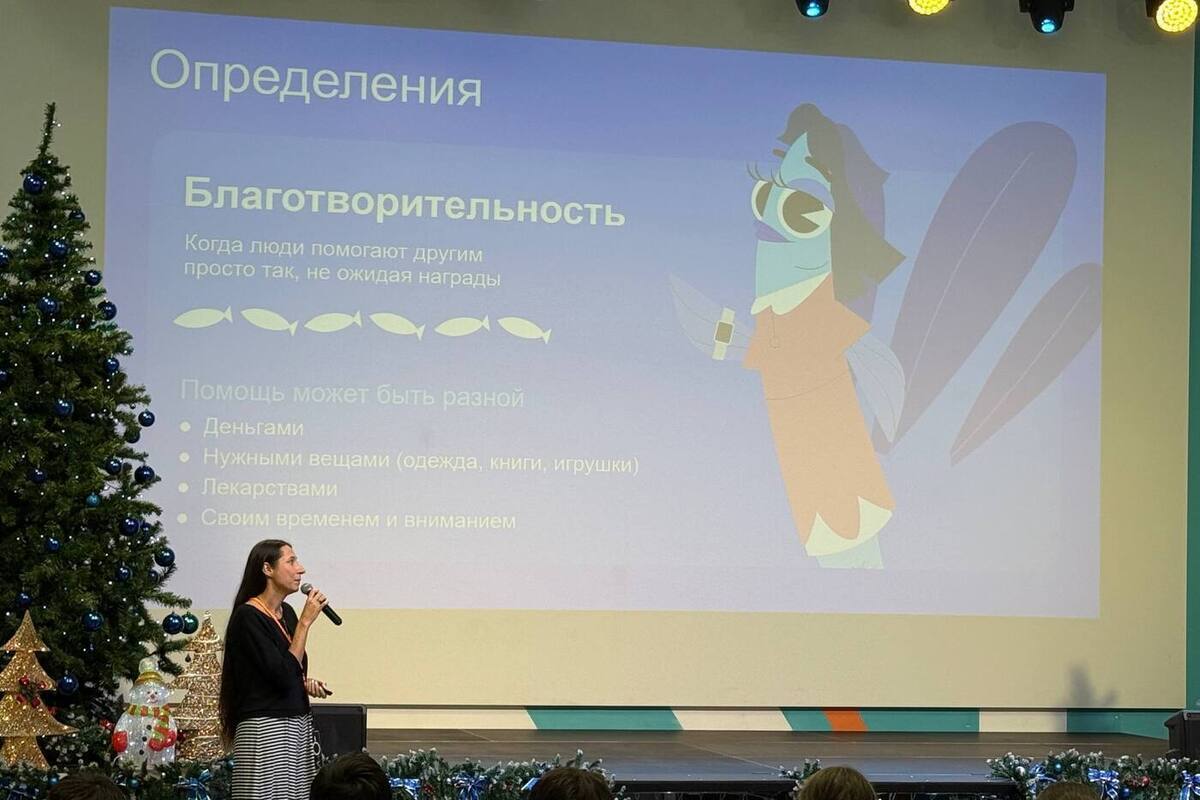 Значительная часть лекции была посвящена благотворительности в цифровой среде. Школьникам объяснили, что помощь другим может выражаться не только в денежных пожертвованиях, но и в передаче вещей, времени или экспертных знаний. Такие варианты позволяют окружающим становиться частью добрых дел осознанно.