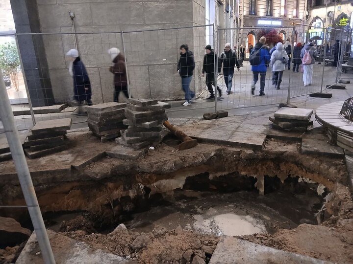 Буровые работы у станции метро «Петроградская» сузили тротуар. Корреспондент «МК в Питере» Наталья Морозова сообщила, что здесь протягивают трубы для электросетей.