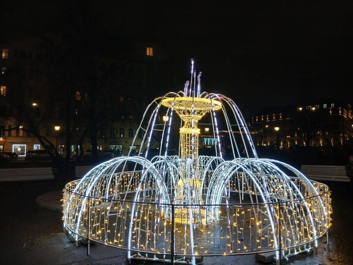 Ёлку на Дворцовой площади зажгли в тестовом режиме вечером 17 декабря. Следом за ней засверкала ёлка у станции метро «Проспект Просвещения». Также световой фонтан зажгли в Геслеровском саду в Петроградском районе.