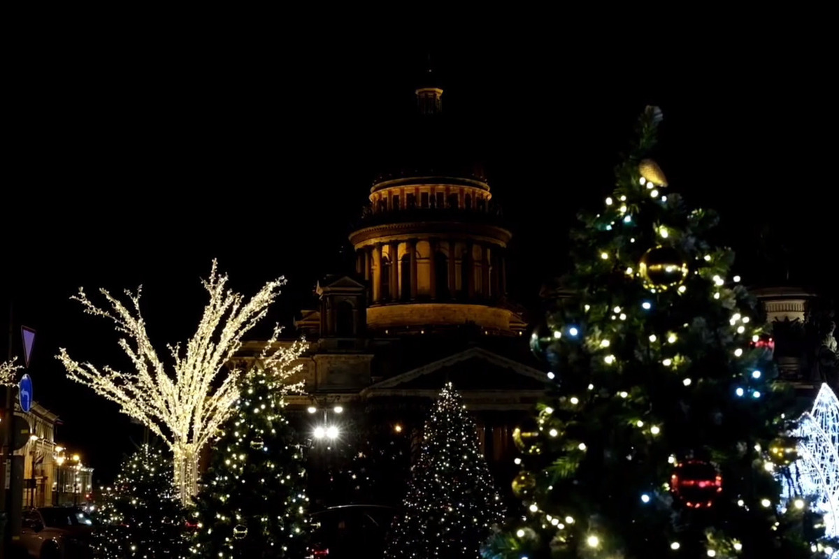 Жителей и гостей города приглашают прогуляться по вечернему Петербургу и увидеть световые инсталляции, искусственные ели и праздничный декор.