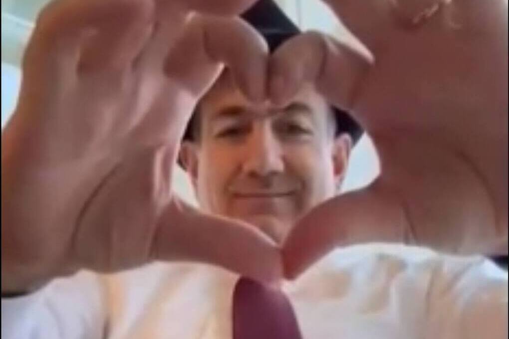 В конце доброго видео политик показал в камеру сердечко и улыбнулся.